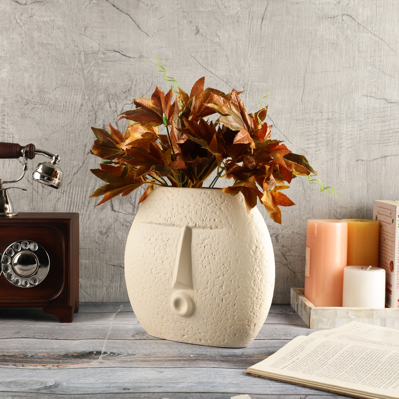 The Decor Lane Face Shaped Vase for Living Room & Home Decorative Ceramic Flower Vase (8 Inch, White)