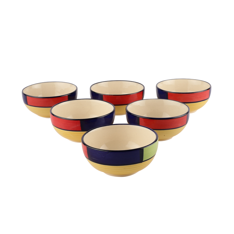 The Decor Lane Hand Painted Ceramic Bowl Set for Snacks Ceramic Serving Bowl Set for Dinner (200 ml, Set of 6, )